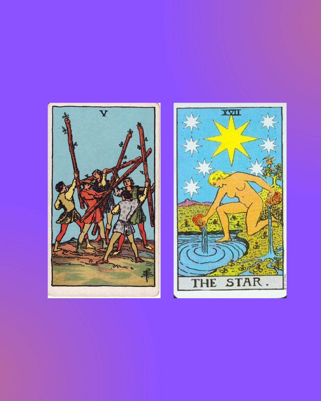 5 of Wands: Conflict and passions. The Star: Hopes and Dreams