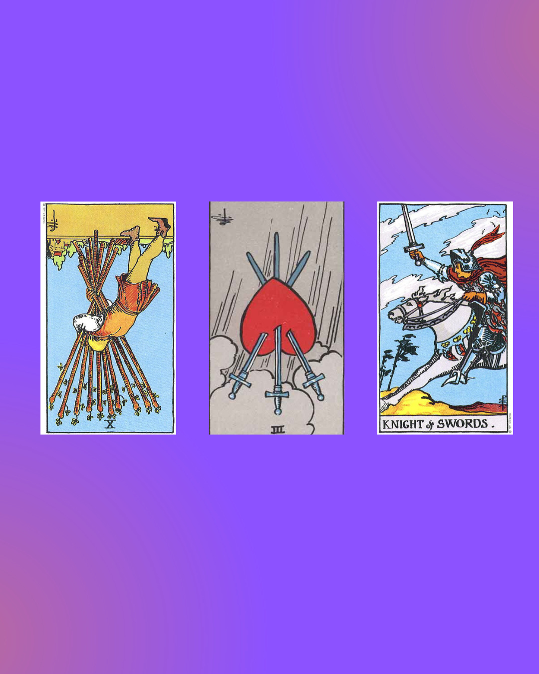 Knight of Swords: Aggression. There may be some lingering anger there, or perhaps some hurtful thoughts.